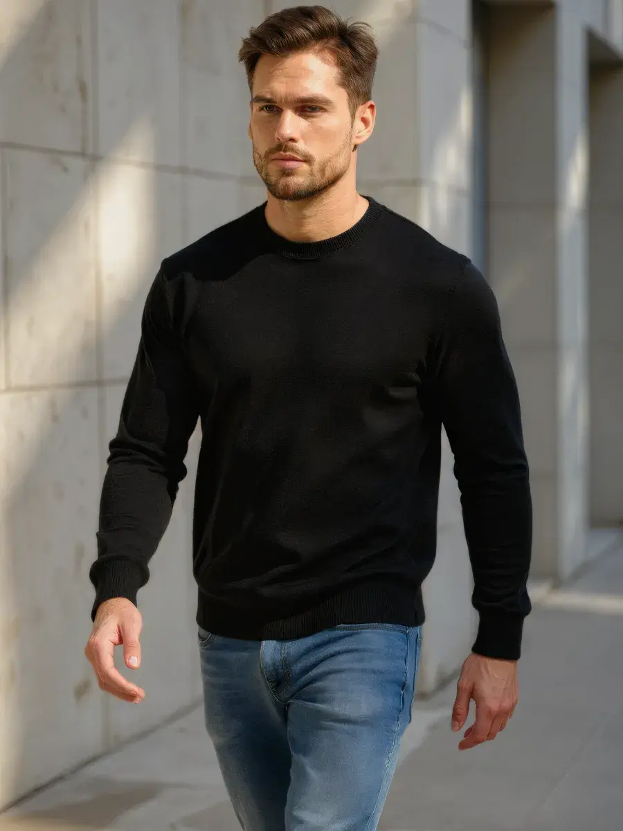Тонкий джемпер из Турции — отличное решение для тех, кто ценит стиль и комфорт в повседневной жизни. Мужской пуловер выполнен из мягкой шерсти мериноса, что обеспечивает приятные ощущения на коже и сохраняет тепло даже в прохладную погоду. Такой базовый вариант подойдет как взрослым, так и подросткам, подчеркивая индивидуальность и современный подход к моде. Однотонная модель легко впишется в любой гардероб, гармонируя с различными стилями одежды: от классики до молодежных образов.