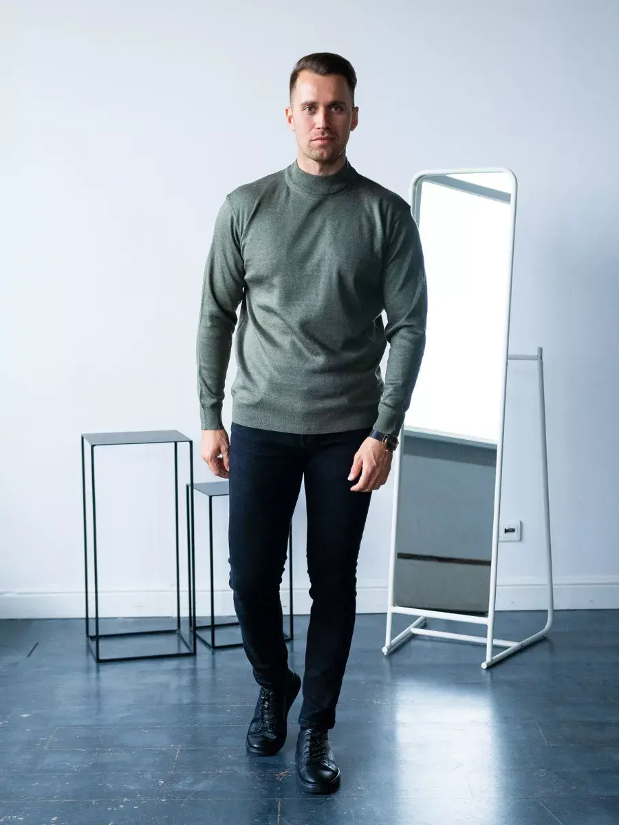 Модный джемпер из Турции выполнен из тонкой шерсти мериноса, что обеспечивает тепло и комфорт в прохладную погоду. Этот стильный свитер подходит как для мужчин, так и для молодежи и подростков, ценящих лаконичный дизайн и качество материалов. Однотонная расцветка делает изделие универсальным, легко сочетающимся с разными образами. Джемпер с горлом подчеркивает современный городской стиль и дарит дополнительное ощущение уюта. Тонкий трикотаж позволяет носить его как самостоятельный элемент, так и комбинировать с другими предметами гардероба. Изделие отличается практичностью и долговечностью, что важно для активного образа жизни. Такой теплый свитер станет отличным выбором для тех, кто ищет комфорт и модный вид без лишних деталей.