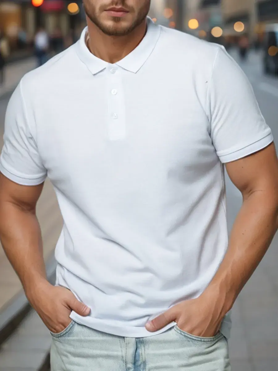 Мужская футболка поло с коротким рукавом — сочетание стиля и комфорта. Базовая тенниска с воротником станет отличным выбором для любого случая — офисной встречи, прогулки или вечеринки.