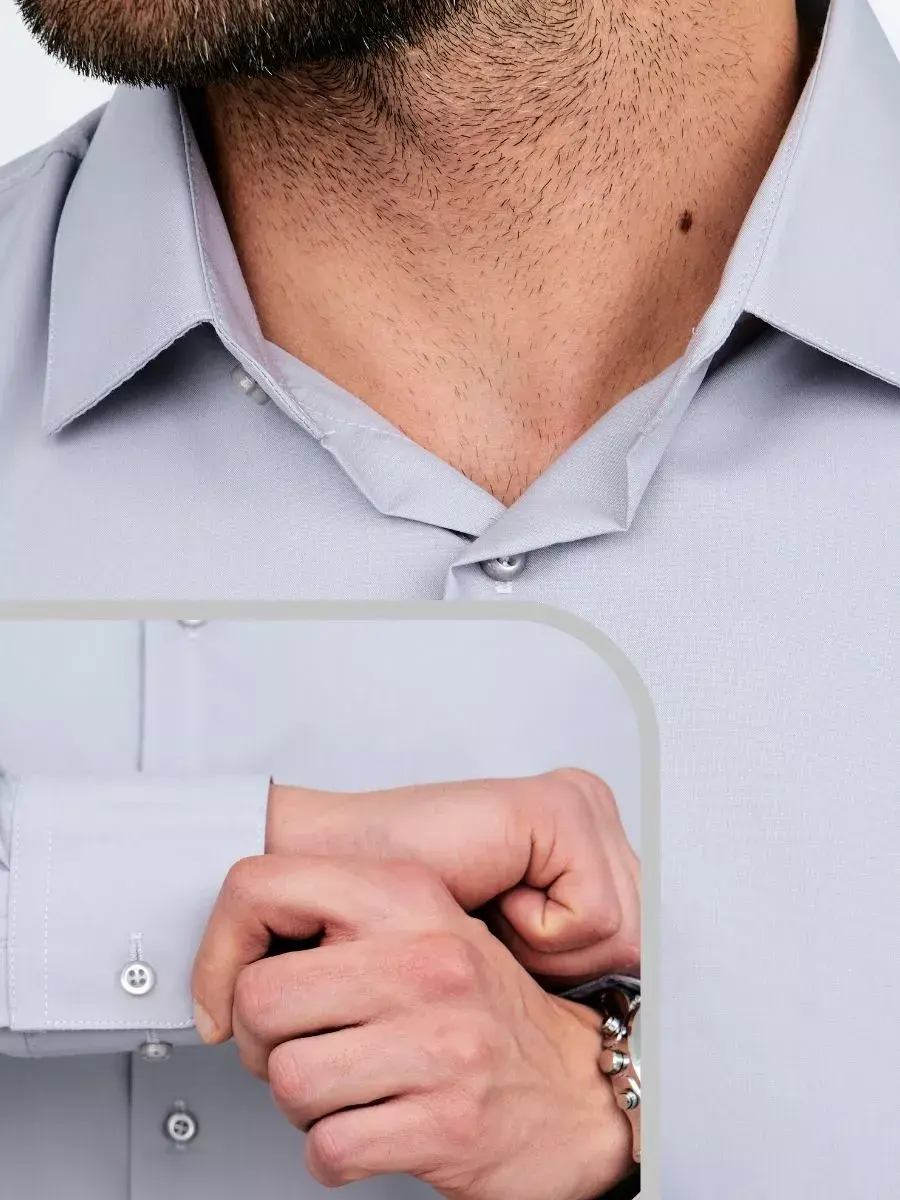 Элегантная мужская рубашка с длинным рукавом в классическом приталенном крое SLIM FIT — идеальный выбор для офиса, свадьбы или праздничного выхода. Универсальный дизайн в стиле old money (олд мани) подчёркивает вкус и сдержанную элегантность. Изготовлена из качественного модала — плотного, дышащего и приятного к телу. Рубашка школьная для подростка не мнётся, легко гладится и сохраняет опрятный вид весь день. Классический воротник и манжеты под запонки позволяют носить её как в деловом, так и в нарядном образе. Подходит для осени и всесезонного использования — от повседневной носки до выпускного или свидания. Стильная рубашка мужская праздничная для тех, кто ценит комфорт и безупречный стиль.